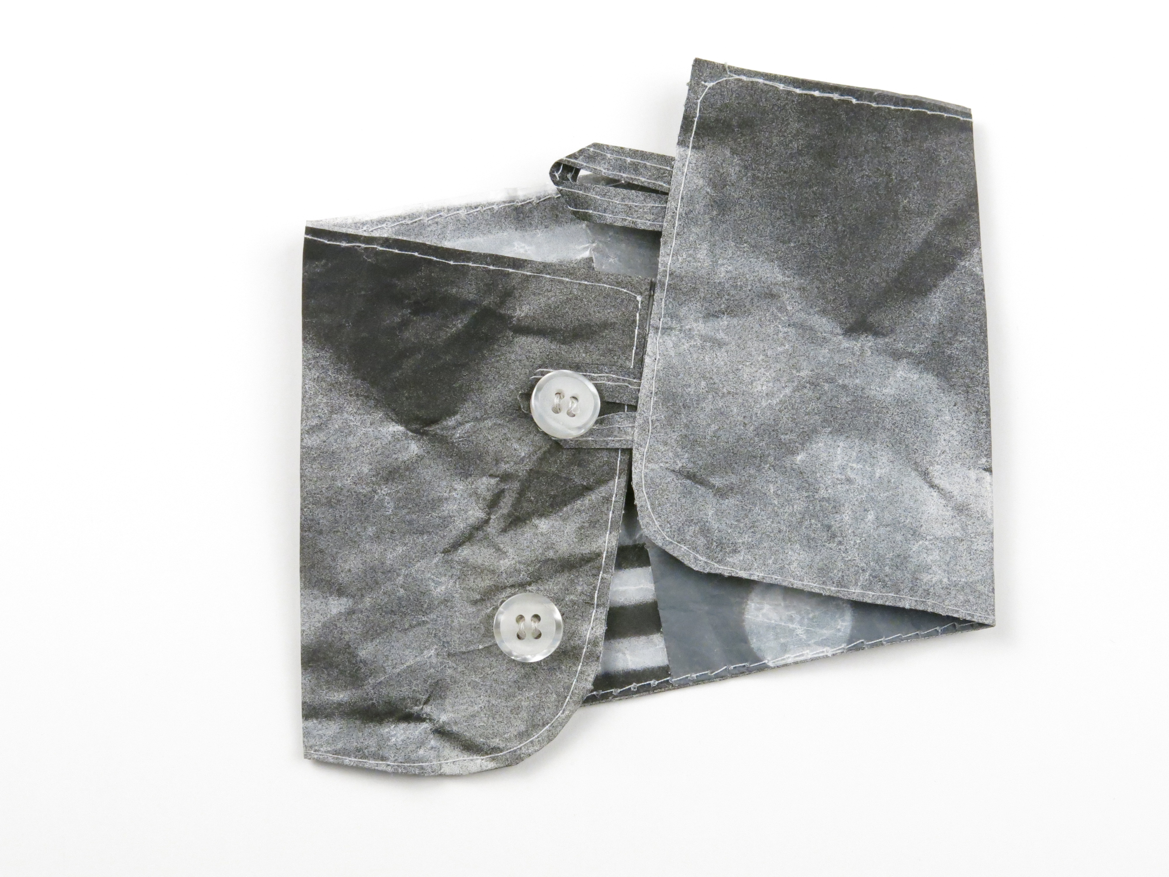 “I was reading Derrida and I came up with the idea of using a material that’s intrinsically valueless,” noted Hamilton. “It’s also extremely lightweight. The stuff looks like it will float away and is made out of nothing.” Yet sewing the waxed-paper clothing was anything but easy, resulting in many rips and discards. Barely there and yet solidly constructed, the pieces are full of contradictions, Hamilton noted.