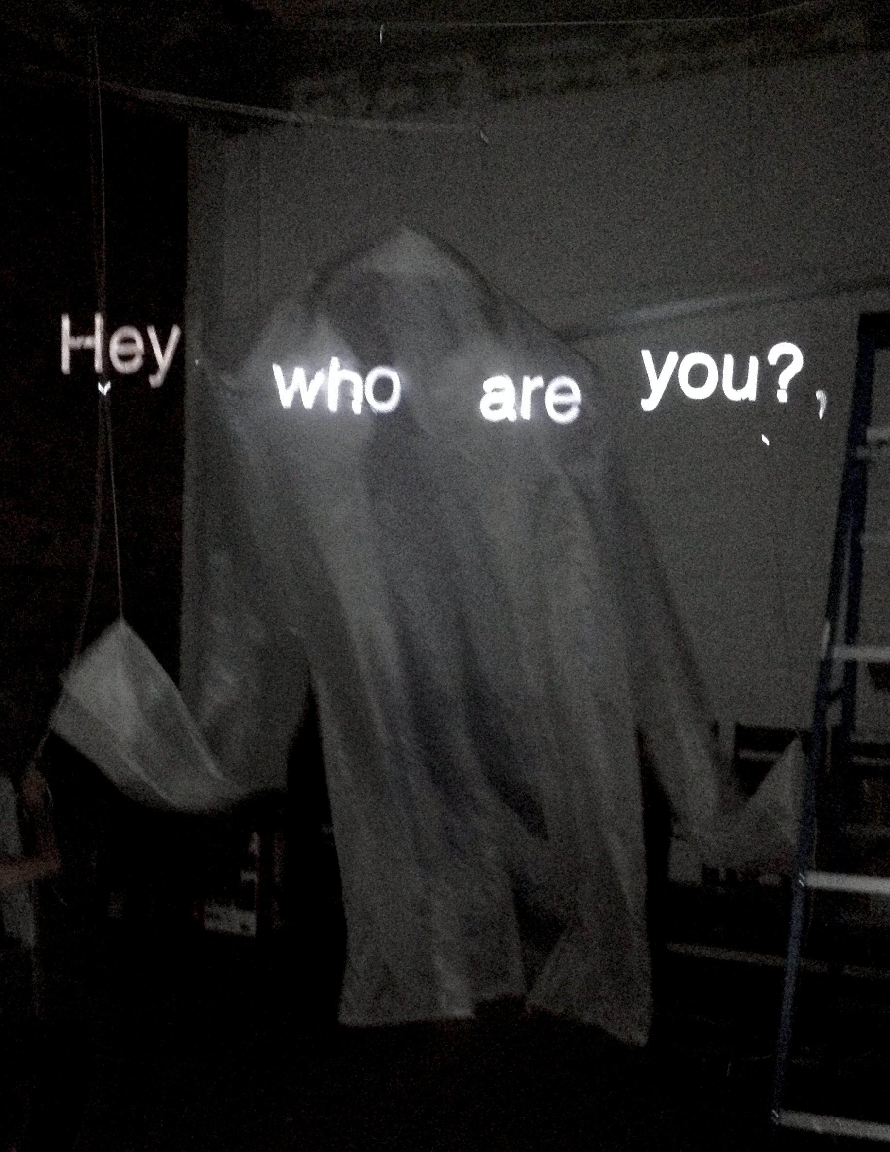 Big thanks to Jim Fawcett for his help rigging the shirts, and to Michael Asbill who helped get the projectors securely lodged high in the corners of the room.