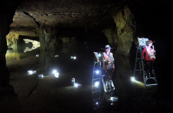 Caroline Osborn and Alissa Cordeiro perform in ‘Wrench’ as part of the Mine Project DaDa spill at the Widow Jane Cave in Rosendale last weekend.